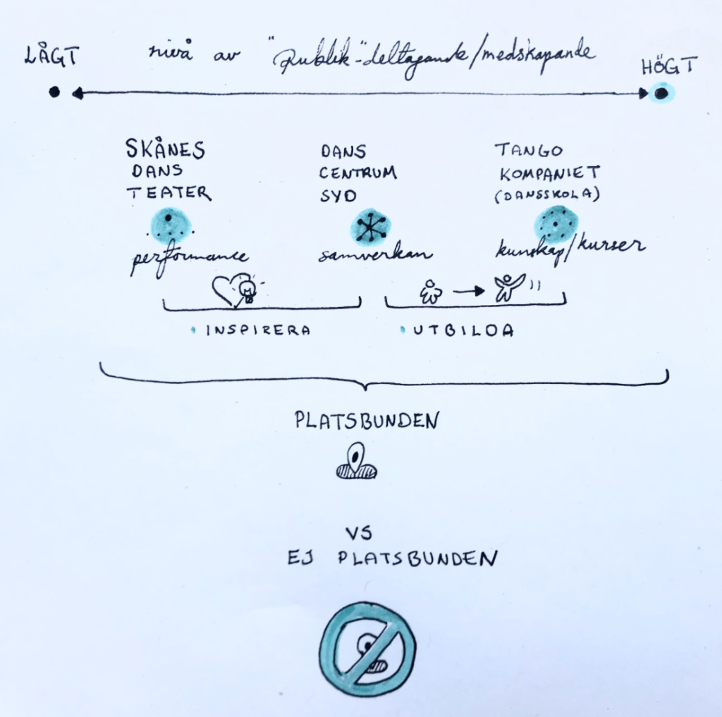 Jag positionerar mig i regionens kulturliv genom att fokusera på kultur för meningsskapande med högt deltagande. En upplevelsebaserad pedagogik uppmuntrar till ett lärande och transformation som uppstår i utforskandet av individen och individen i samverkan med andra. En kombination av performance art och co-design med syfte att både inspirera och “utbilda”. Till skillnad av andra aktörer som Skånes Dansteater, Danscentrum Syd och Tangokompaniet så är jag inte beroende av en fast plats att vara på.